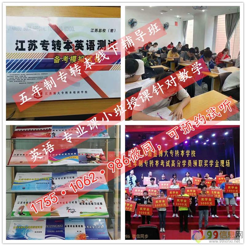 江苏瀚宣博大专转本学校开设英语和专业课辅导14年,五年制专转本培训辅导班小班化授课,全日制上课模式,全年滚动开班,随到随学,一次报名可循环上课至考前,中间不收取任何费用,包括所有书本、资料、历年英语真.题卷、模拟卷、押ti卷、专业课精准考纲、专业课习题册等,还根据学员的不同基础情况提供更丰富的学习资源、高效的复习方法、英语零基础辅导、专业课针对性教学,让五年制专转本学习更有方向性和针对性,通过率更高,并且江苏瀚宣博大专转本学校还提供免费试听课,先试听感受师资情况,具体详情联系瀚宣博大宋老师1755(微)1062(信)986了解,联系老师预约转本试听课来源www.99xinxi.net。