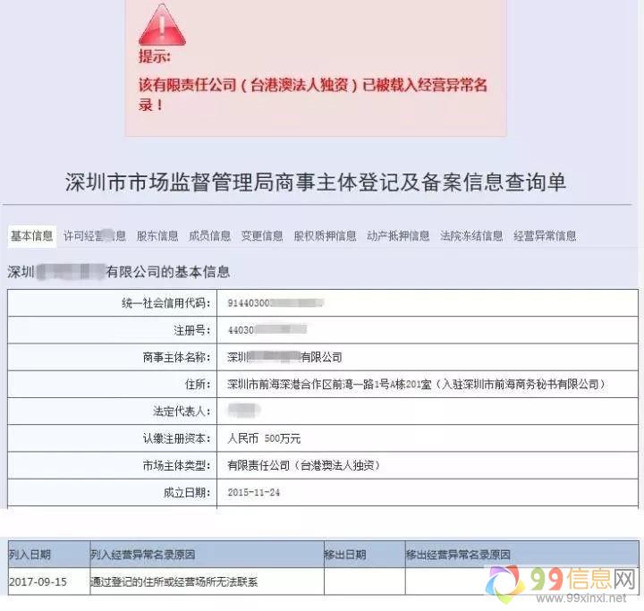 地址是注册公司的必要条件之一,没有地址就无法注册公司原文www.99xinxi.net。一般情况下,工商会定期发信函到注册地,或是打电话过去,如果多次无人收信,或是无人接听电话,那么很可能被列入经营异常名录,又称“非正常户”。列为非正常户后,公司需要向工商提供地址变更的材料,申请“解非”,如果没有进行任何操作,时间长了,营业执照会被吊销9.9.x.i.n.x.i.n.e.t。