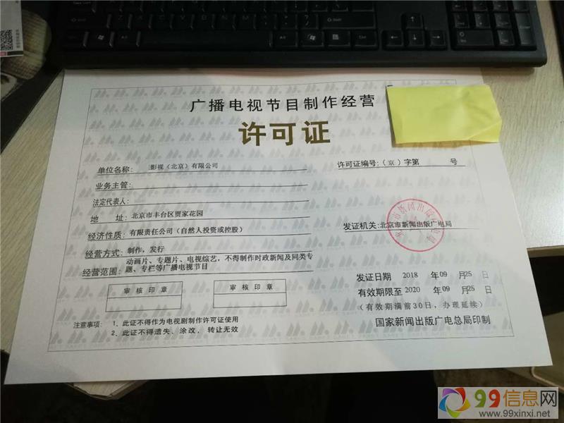北京无影视专业人员申请电视节目制作经营许可证审批