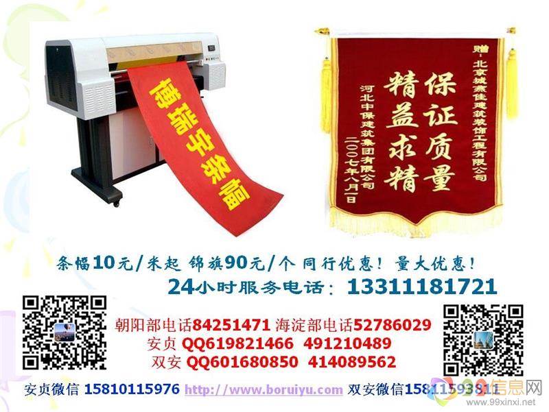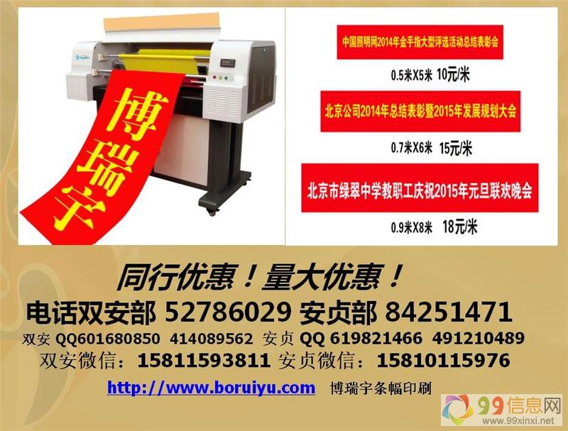 喷绘制作/99xinxi.net写真制作/展板制作/横幅制作/标语制作/X展架制作/易拉宝制作制作易拉宝、X展架、展板、条幅 X展架易拉宝制作公司名片,展板,易拉宝,X展架,横幅,写真,标书北京条幅锦旗绶带袖标展架易拉宝展板制作欢迎来电: 本公司承接二手活!9.9.信.息.网