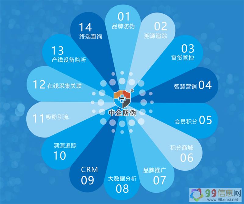 中企防伪专注防伪溯源行业近9 9 信 息 网20年,服务品牌数千家。中企防伪是国内较早从事防伪印刷、特种印刷的专业防伪印刷服务商。由研发团队自主开发完成的中企云码平台已为上千家企业所使用,是利用可变码技术、大数据、物联网、互联网等技术,以数字码、RFID标签等为载体,为客户提供品牌防伪、溯源追踪、防窜货管控、大数据分析、数字营销等覆盖产品全生命周期的综合管理平台。9+9+信+息+网9~9~信~息~网