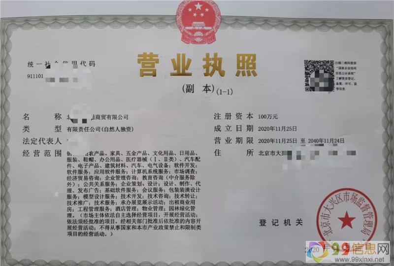 2020年12月执照,地址还能用一年,含医疗器械一类二类 9 9 信 息 网