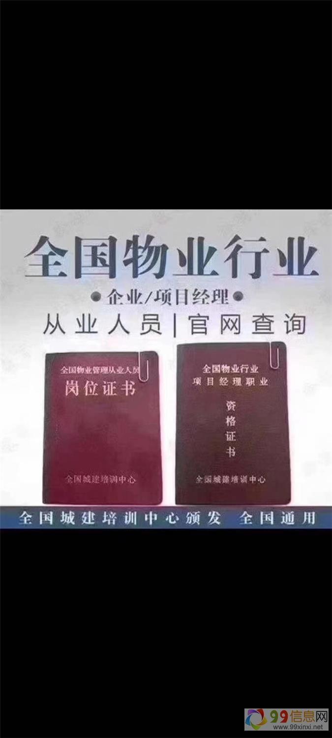 【全国城建培训中心】包考试99信息网物业经理(物业从业资格证)9 9 x i n x i n e t物业项目经理来自www.99xinxi.net全国房地产经纪人9_9_信_息_网全国城建培训中心颁发,无户籍限制!99信息网www.99xinxi.net物业公司升资质、年检必备!来源www.99xinxi.net