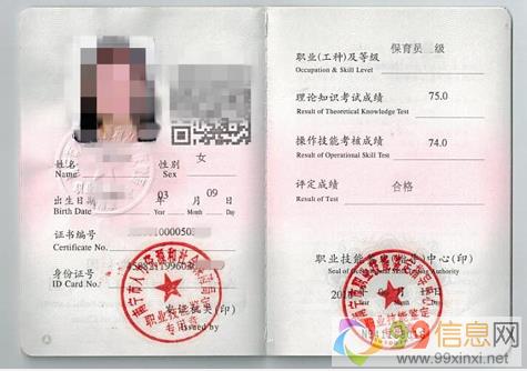 保育员资格证是经过培训并参加考试合格者由国家劳动和社会保障部统一颁发国家职业资格证书,全国通用,终生免审9~9~x~i~n~x~i~n~e~t。
