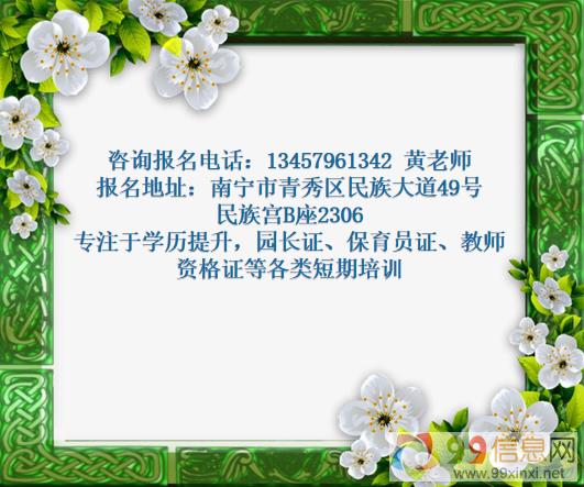 1、南宁市青秀区民族宫B座2306 远航教育 黄老师 13457961342 15296481176