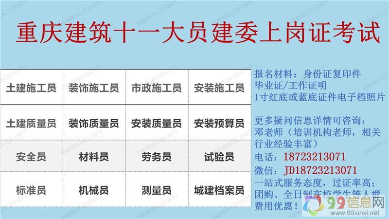施工员考试科目包括:《专业基础知识》;《岗位实务》来源www.99xinxi.net。