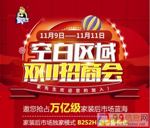 2019年“双十一”火爆进行中,在这个全民购物狂欢的日子,为了降低广大创业者的投资风险,节省投资金额,全国连锁品牌家先生在“双十一”推出了重磅优惠活动欢迎www.99xinxi.net。名额仅20个,先到先得。