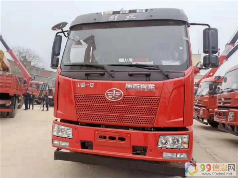 解放J6L新款半浮平顶排半驾驶室,大柴180马力发动机,10.00R20钢丝胎,陕齿8档变速箱,机械减震座椅,自动空调,200L钢油箱,货箱尺寸:5600×2300×600,上装长兴10吨吊机,举升高度19米,工作半径17米99信息网www.99xinxi.net。