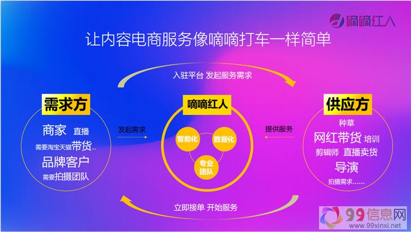 反观淘宝、京东、拼多多这些本身就是个卖场的电商平台,假设我们之前已经在里面开设了店铺,那么加上直播其实就等于完善一下导购,虽然流量成本摆在那里,但好歹也全是存在购物需求的用户,人家在商品详情页无法找到的答案,存在的选择困难,你通通在直播上进行解决,这种纯粹的买卖关系转化率高得多。很多主播都习惯借助网红资源共享平台开启了更广阔的变现之路,例如嘀嘀红人9_9_信_息_网。【公众號嘀嘀红人】嘀嘀红人推出线上带货推广结合线下拍摄设备扶持的模式,为商家和网红提供了高效精准的合作渠道。【baidu访问嘀嘀红人】在嘀嘀红人平台上,商家可随时上传爆款商品,发布推广任务,平台将结合抖商数据,精准匹配海量达人接单,纯佣推广,无需任何前期推广费用99信息网www.99xinxi.net。而网红也可以在平台的扶持下实现IP价值的最大化。