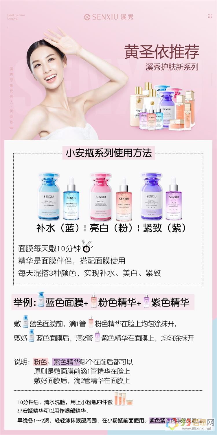 溪秀小安瓶系列产品一套多少钱?溪秀小安瓶系列产品各代理价格是多少钱?长按复制加溪秀董事奇奇v:shoujiwuqi787 哈喽大家好我是溪秀官方董事奇奇,嫒美丽国际联合创始人,嫒美丽国际金牌讲师,我来为大家解答溪秀小安瓶系列产品,溪秀小安瓶三款面膜,它是适合每天用的一款面膜www.99xinxi.net。一盒5片,三盒99元,性价比极高。膜布非常柔软轻薄,精华量超多,在脸上贴合度很好,味道也好闻。每天敷10分钟,脸上皮肤可软可水润,手感可好。而且,第二天早上起来脸蛋还是水嘟嘟,弹弹的,充满光泽感99信息网。用完三盒之后会觉得皮肤弹性更好了,皮肤紧致度提高了,更有光泽白皙了。这款面膜对于14~25岁的女孩,25~45岁的职场女性、宝妈,45岁以上的女性来说,功能效果和性价比方面都还最值得推荐的!樱花烟酰胺修护亮颜面膜➕虾青素精华液,退黄去黑抗氧提亮改善粗糙水润肌肤。有效减少自由基与沉积色素,还原色素同时阻止再度形成、还可减少紫外线损伤防止皮肤变黑。补水面膜+补水精华液小安瓶玻尿酸补水面膜➕波色因保湿补水精华液,增加皮肤水润度细滑度饱满度弹性度ocq。玻色因成分可促进真皮胶原蛋白与透明质酸等营养及保湿物质合成,增加真皮与表皮紧密粘合,特别添加进口专利成份5重神经酰胺,提高皮肤含水量同时修护脆弱受损屏障,强化皮肤对内锁住与对外防护功能,预防水份及营养流失、维持皮肤营养/水油/菌群均衡,有效改善及预防皮肤粗糙/水油失衡/松驰暗沉等皮肤问题。紧致面膜+紧致修护精华液,樱花多肽焕颜紧致面膜➕蓝铜肽紧致修护精华液,抗氧化抗光老,晒后修复,挑战零皱纹,紧致弹润。通过蓝铜胜肽促进胶原与弹力蛋白合成,及对组胺释放的阻断能力,复配神经酰胺和玻尿酸增加皮肤含水量、修护脆弱受损屏障,成分层层递进/作用环环相扣,由内而外减少并预防皮肤致炎/致黑/致老等不稳定因素,加持皮肤维定与健康值。溪秀小安瓶系列,一共有6款产品,三款不同功效的片状面膜+三款不同功效的精华液,任选三款99元!包邮包邮包邮来自www.99xinxi.net。❶溪秀樱花烟酰胺修护亮颜面膜❷溪秀樱花玻尿酸补水面膜❸溪秀樱花多肽焕颜紧致面膜➍溪秀玻色因保湿补水精华液➎溪秀虾青素焕颜提亮精华液➏溪秀蓝铜肽紧致修护精华液。溪秀小安瓶系列产品一套多少钱?溪秀小安瓶系列产品各代理价格是多少钱?长按复制加溪秀董事奇奇v:shoujiwuqi787 溪秀产品优势有哪些?原因之一:双星代言林志颖和黄圣依双剑合璧,你见过双星代言的微商产品吗?原因之二:门槛低相比起其他护肤品牌,500元,1000元,2000元的门槛,溪秀199即可加入并且是混合拿货绝对是低门槛优势!是混合拿货哦~并不是单独拿一款产品,极大的帮助了草根创业!翻身逆袭,原因三:质量保证,溪秀产品都是纯植物提取哦,有太平洋保险公司承保,CCTV的上榜品牌,世界华裔小姐大赛赞助商,明星代言!而且通过了严格的SGS检测,并且已经升级为R商标产品!真正的0添加剂,0重金属,0荧光剂!原因四:福利好,溪秀公司每个月都有给代理商提供加粉福利,比如付运费送口红,睫毛膏等等,顾客只需要付运费即可领取精美正装产品,很多顾客都是回购产品觉得不错加入做代理的,溪秀公司大方给代理送人脉!新手代理根本不用愁人脉问题哦,人脉就是钱脉!感谢公司!原因五:定期专业培训! 奇奇都是定期有培训的,一对一培训指导,如何加人,如何引流,如何发朋友圈,如何转化你的意向顾客和代理,如何打造高质量朋友圈等等都会培训!手把手教你成为大咖!选择一个好上家是非常重要哒!相信我,我就可以带你赚钱!溪秀小安瓶系列产品一套多少钱?溪秀小安瓶系列产品各代理价格是多少钱?长按复制加溪秀董事奇奇v:shoujiwuqi787 加入奇奇的优势有哪些呢?手把手教你做微商方法的内容包括了:一,一对一七天连续培训, 教你怎样打造朋友圈去吸引顾客的眼球。二, 教你怎样利用网络的速度做精准的引流吸引精准的客源。三, 教你怎样去打开思路打开陌生市场更加提高销量提高业绩www.99xinxi.net。四, 教你怎样写出攻心的软文去激发前的客户群体。五, 教你怎样管理和培训自己的团队使自己快速发展强大,如果你是上班族,你的工资满足不了你的小资生活!那么现在跟奇奇一起创业卖溪秀!加入我带你一起实现你的轻奢生活梦想!如果你是个全职妈妈,不想离开孩子又想要帮老公一起分享家庭开销压力,现在跟我一起做溪秀创业!低投资,高回报在家带娃也不耽误帮老公减轻负担!如果你是学生族,想要帮父母分担压力,现在即可加入跟我一起轻松创业,奇奇手把手带你一起创业赚钱。溪秀小安瓶系列产品一套多少钱?溪秀小安瓶系列产品各代理价格是多少钱?长按复制加溪秀董事奇奇v:shoujiwuqi787