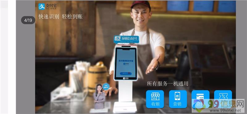 刷脸支付在2018年就已经进入商用阶段,随着支付宝“蜻蜓”和微信支付“青蛙”上线,刷脸支付使用场景更是从大型超市、连锁餐厅等中大型收银场景,扩张到水果店、小卖部等小型收银场景9_9_信_息_网。刷脸支付正在掀起新零售新浪潮9 9 x i n x i n e t。可以预见未来刷脸支付将会普及到任何一个收银场景99信息网www.99xinxi.net。‘欢迎个人或者全国各地团队领导人合作,探讨,共赢!刷脸已至,未来已来,您来不来?
