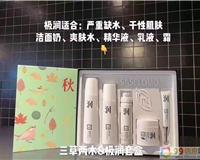三草两木水乳霜套盒里面共有五件单品+三片养面膜《洋甘菊补水功效的面膜》一共八件单品,非常合算,一套全国统一价格358元,如果说您是拿代理自用的话,那么会更便宜更合适!每一个套盒上都有防伪码,保证正品货源。一件包邮,让您购物放心!售后全程指导护肤,会教怎么用,怎么调理皮肤,让您有一个愉快的体验,帮助您的皮肤越变越美!..
