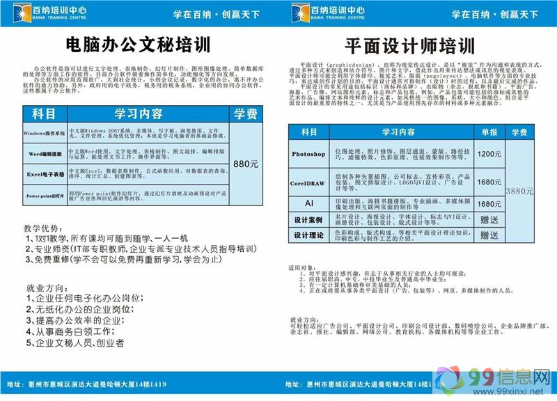 3.电子表格实例制作、工资的计算、工资条的制作,不同表格内的数据合并,综合练习等原文www.99xinxi.net。我们的培训课程比起其它同类的软件培训,更注重Excel在公办过程中的的实际应用,提高办公效率。