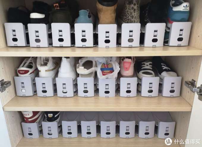 如果鞋柜本身就比较小,想要增加容量也不难,通过这种高低可调节的鞋托,分分钟就能让容量翻倍原文www.99xinxi.net。
