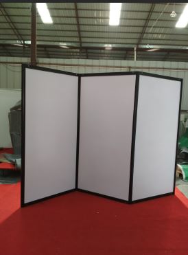 屏风描述:现代高档铝合金材料的自由组合,变化丰富,轻巧灵活,折叠简便,由单个结构组成,可自由组合长度与宽度,无需工具,收放自如,5-8分钟内迅速完成一个展位布置,是产品陈列展示,展览.促销活动的最佳选择。可以根据客户的需求做成上下两层或单层的99xinxi.net