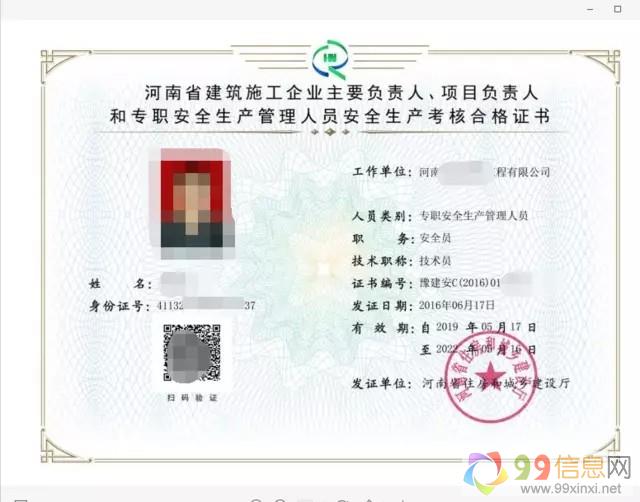 (专职安全员) 高中以上学历复印件一份或5年以上从事安全工作证明一份,以上资料加盖单位公章。欢迎www.99xinxi.net