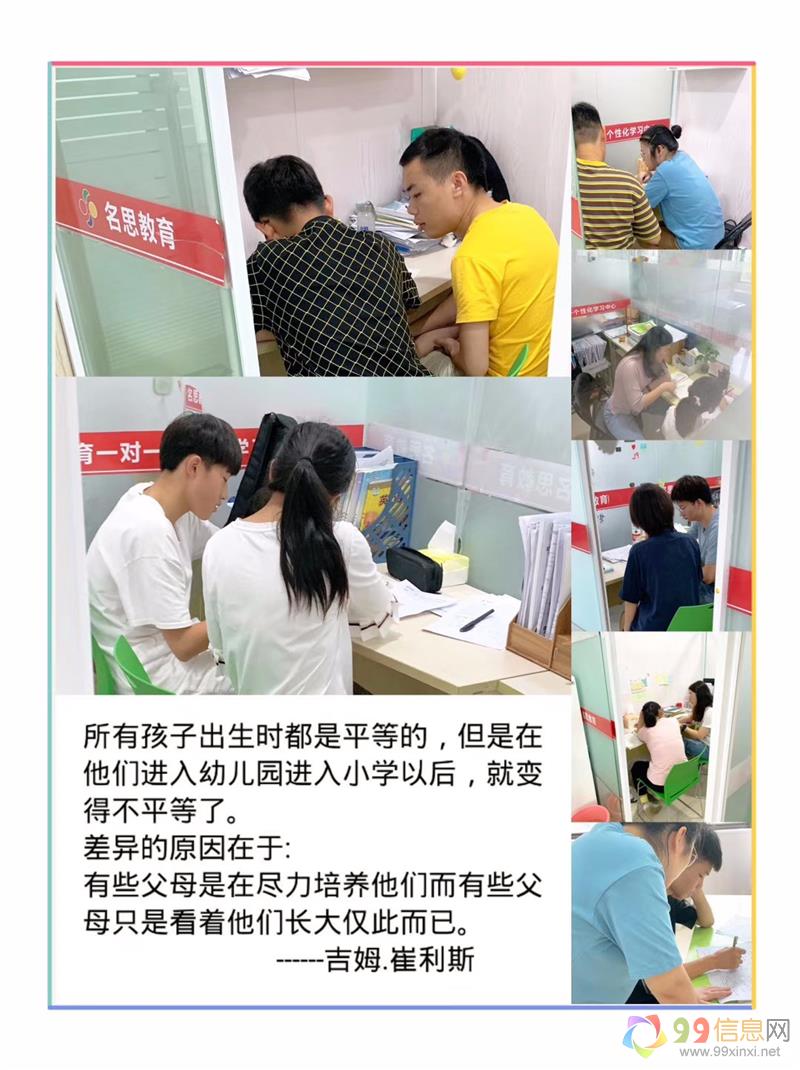 名思教育在所在城市已成为了广大家长和学生进行课外辅导的首选,名思教育是以学生为中心,根据学生的特点,采用"教育专家1对1学科分析+名师1对1定向辅导+名师陪读+心理老师激发斗志+学习管理师全程跟踪管理"相结合的个性化课外辅导方式,来确保学生的学习效果9 9 x i n x i n e t。
