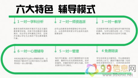 名思教育最主要的上课模式是一对一辅导,这种教学模式可以保证学生可以得到最好的听课效果和学习成果,是一种极其有效的教学方式。名思教育的一对一辅导更是把个性化教学践行到了极致9+9+x+i+n+x+i+n+e+t。能帮助学生制定个性化学习方案,帮助学生制定个性化课程指导,帮助学生个性化解决学习上的问题,有针对性的帮助学生成绩进步。另外,名思教育一对一辅导可以由学生和家长挑选适合自己的老师,这样师生配合更默契,有助于学习进步9 9 x i n x i n e t。名思教育一对一辅导老师注重每一个细节,全面助力学生成绩进步。学生随时可在名思辅导中心上自习课,并且可以得到各科辅导老师的答疑,各科老师全程陪读www.99xinxi.net。