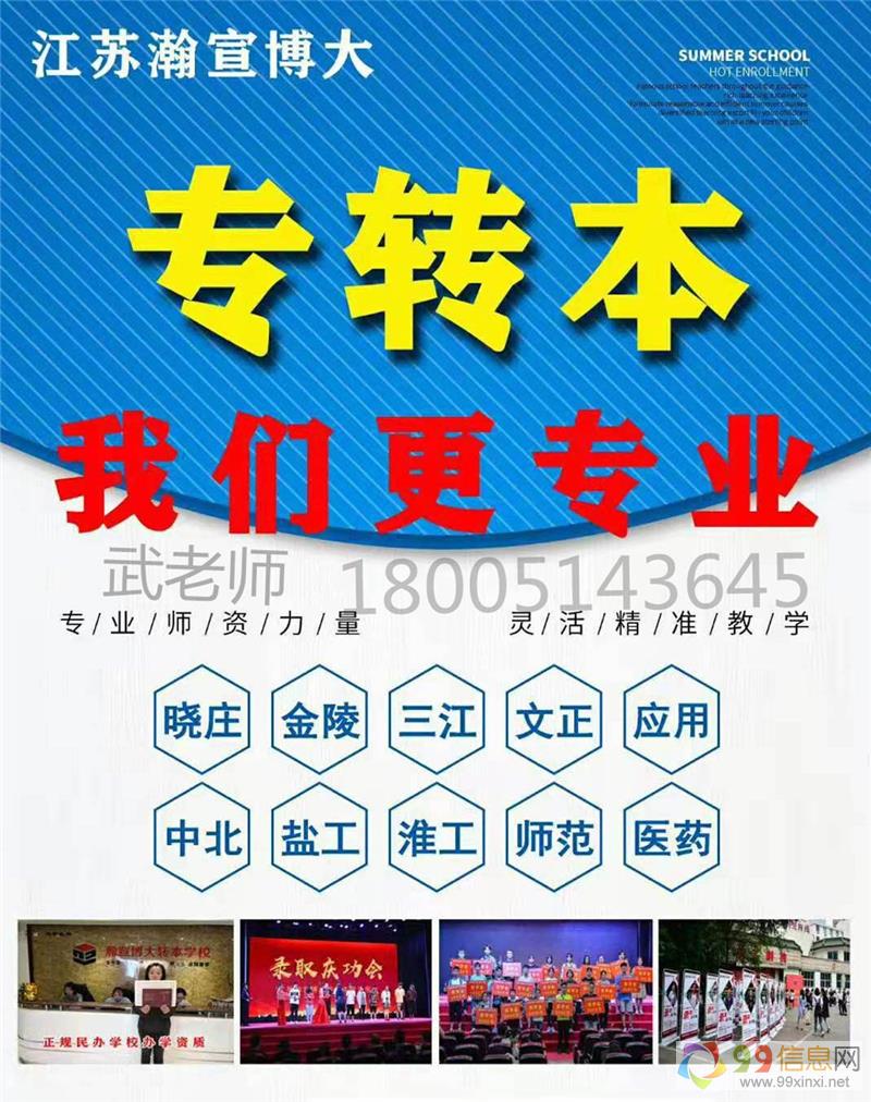 江苏瀚宣博大的教材都是教研团队集合多年的转本经验自主编写,针对性更强,学习更高效。班次多样化,单科班,考前班,冲刺班,协议班,充分考虑到每位学员的不同需求,并且还设有寒暑假集训营,高考复习模式,半封闭化管理,集中学习,让学员在短时间内学习更高效,提升更快,更多内容可以联系江苏瀚宣博大五年制专转本 武老师免费领取招生简章:180(微)0514(同)3645,fky186微99xinxi.net。