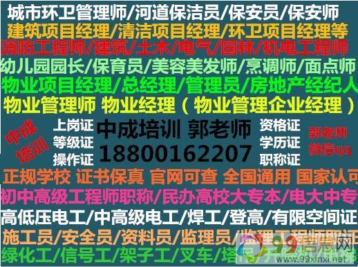 建筑八大员培训、监理工程师、高低压电工、焊工、架子工、信号工、塔司、、吊兰、卷扬、外施电梯、挖掘机、叉铲车、物业房产经纪人培训、消防中控值机员培训、物业经理培训、物业项目经理培训、物业管理员培训、物业管理师培训、保育员培训、园长证培训、消防员培训、房产经纪人培训、中控值机员培训、物业设施设备培训、大专证、本科证、中专证、中高级工程师等 9+9+信+息+网