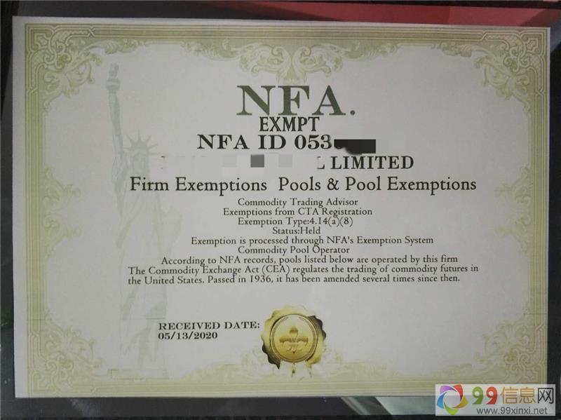 美国全国旗货协会(NATIONAL FUTURES ASSOCIATION),简称NFA9+9+信+息+网。美国NFA牌照目前分两种:一种是非会员 ,另种是正式会员的。