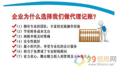 • 1、代理记账报税、税务 99xinxi.net