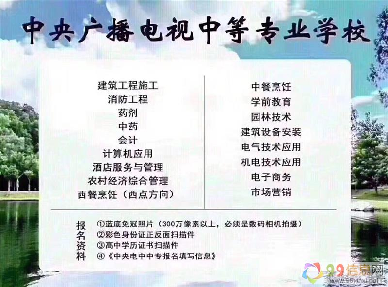 中央广播电视中等专业学校近几年招生宣传火热,报名的学员主要是为了取得电大中专毕业证以后报考相关资格证书或者是初中毕业生想进一步提升学历为了求职工作方便9_9_x_i_n_x_i_n_e_t。中央广播电视中等专业学校怎么报名?费用多少?多久毕业?报名需要哪些资料?本文给予详细解答和说明www.99xinxi.net。