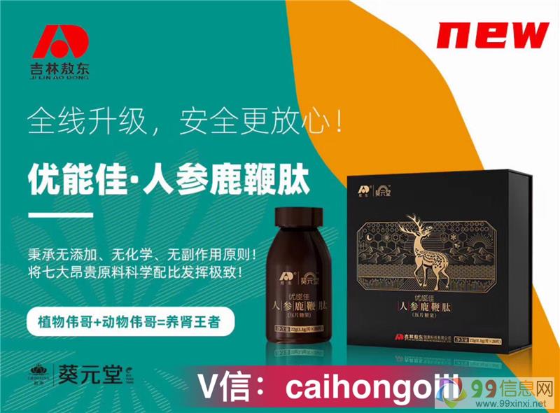 吉林敖东人参肽鹿鞭肽强大的市场空间,成为了代理商目前火爆的选择9.9.x.i.n.x.i.n.e.t。那么做吉林敖东人参肽鹿鞭肽代理怎么样?优能佳招商加盟彩虹威信caihongoiil 很多人都选择男性保 健市场,就是因为该市场拥有着强大的潜力和空间欢迎www.99xinxi.net。