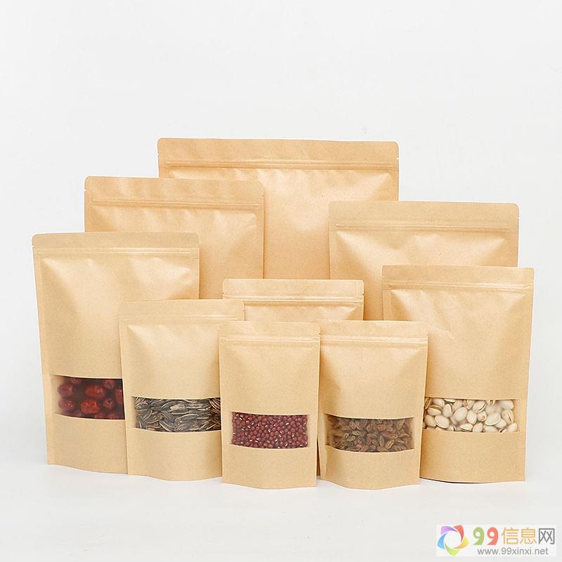 开窗牛皮纸自封袋主要将牛皮纸,PE膜 [4] (用普通设备制作夹链自封袋 [5] ),哑光磨砂膜,通过复合工艺将这几种材料压合在一起,形成美观大方的具有磨砂可视的复合袋 [6] 包装袋。不开窗牛皮纸自封袋主要铝膜,牛皮纸,磨砂PE膜三层复合在一起,形成不可视不开窗口袋9.9.信.息.网。八边封牛皮纸自封袋是通用模具将袋型做成立体包装袋,因牛皮纸立体袋有八条边而得名“牛皮纸八边封袋”。
