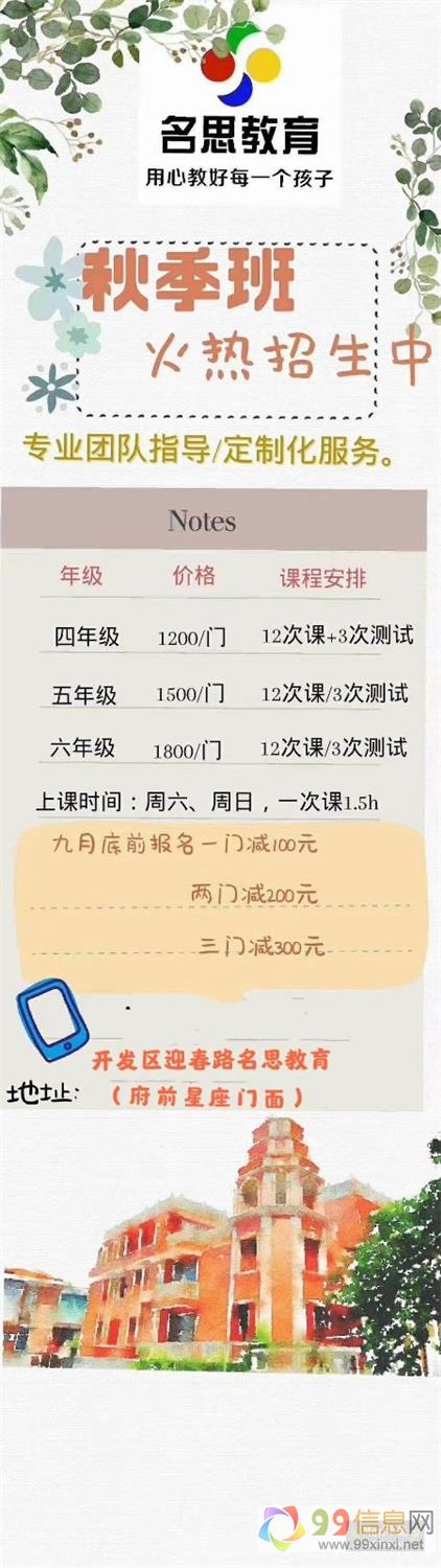 9月底前报名有优惠:一门减100,两门减200,三门减30099信息网