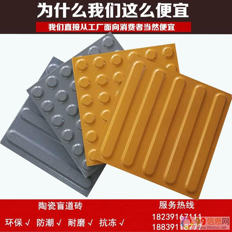 众光所生产的盲道砖亦被称为全瓷盲道砖或者陶瓷盲道砖,多用于室外广场、地铁站、高铁站、飞机场、汽车站等公共平台室外场所9~9~x~i~n~x~i~n~e~t。该产品的主要原料是以石英、粘土、长石等多种矿物质原料按照严格的配比经过磨粉、加湿、烘干物理挤压成型的一种全瓷抗腐蚀产品,并且对每层石材都进行高温烘干处理,迅速固定石材的结构强度及韧性,不采用阳光晾晒方法,以保证每一块盲道砖的参数配比;生产中,通过多次热压及热压三要素的调整(提升温度、延长时间、加大压力)等,确保产品的含水率达到标准甚至更低,同时也进一步保证了产品的抗压强度。因其突出的特点并且色泽纯正醒目、美观大方,从而取代了石材、水泥、金属、塑胶等盲道材料99xinxi.net。全瓷盲道砖普通材质的一样分为盲点砖和盲条砖: