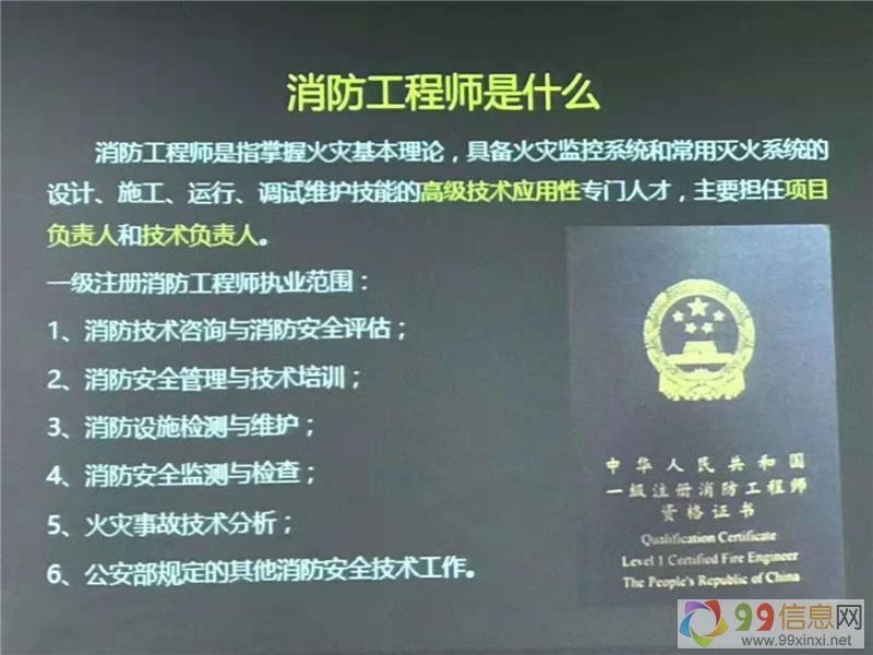 9+9+信+息+网 详情电话咨询(威信同号)www.99xinxi.net一级注册消防工程师资格实行全国统一大纲、统一命题、统一组织的考试制度。考试原则上每年举行一次。99信息网www.99xinxi.net(一)取得消防工程专业大学专科学历,工作满6年,其中从事消防安全技术工作满4年;或者取得消防工程相关专业(见附件1,下同)大学专科学历,工作满7年,其中从事消防安全技术工作满5年。LIl9~9~x~i~n~x~i~n~e~t来源www.99xinxi.net